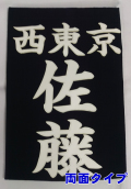 剣道垂用の名札(ネーム)です。正紺#8000生地にクラリーノ文字を縫い付けています。